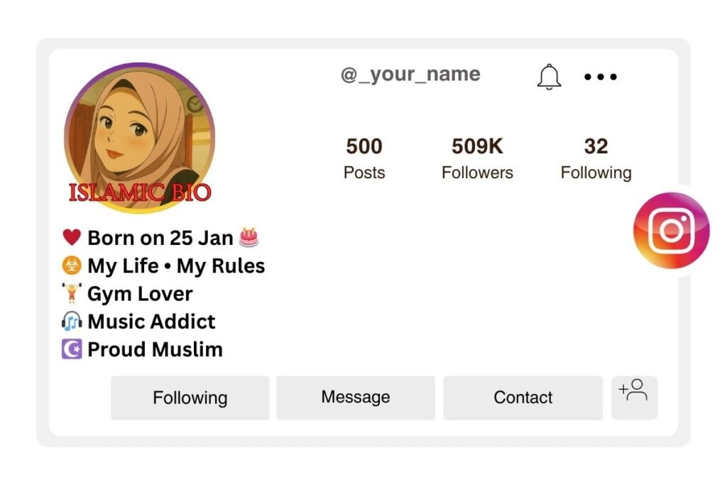 An Islamic Bio for Instagram is a short description on your profile that reflects your faith, values, and love for Allah ﷻ. It can include Quran quotes, Islamic sayings, or simple faith-based lines to inspire and connect with others.